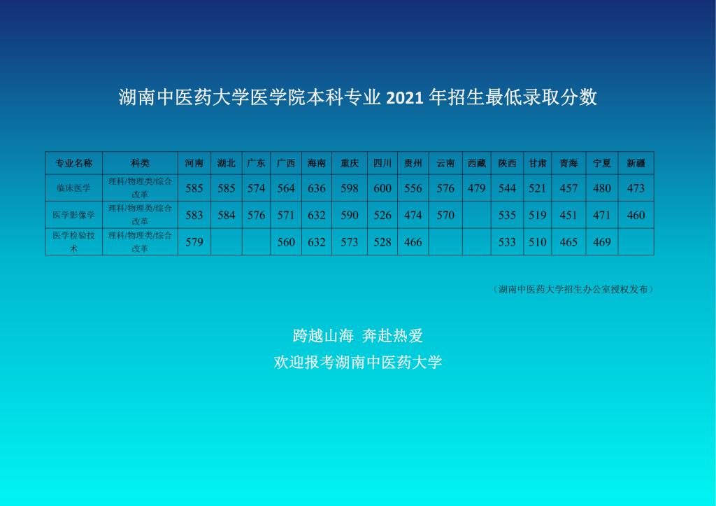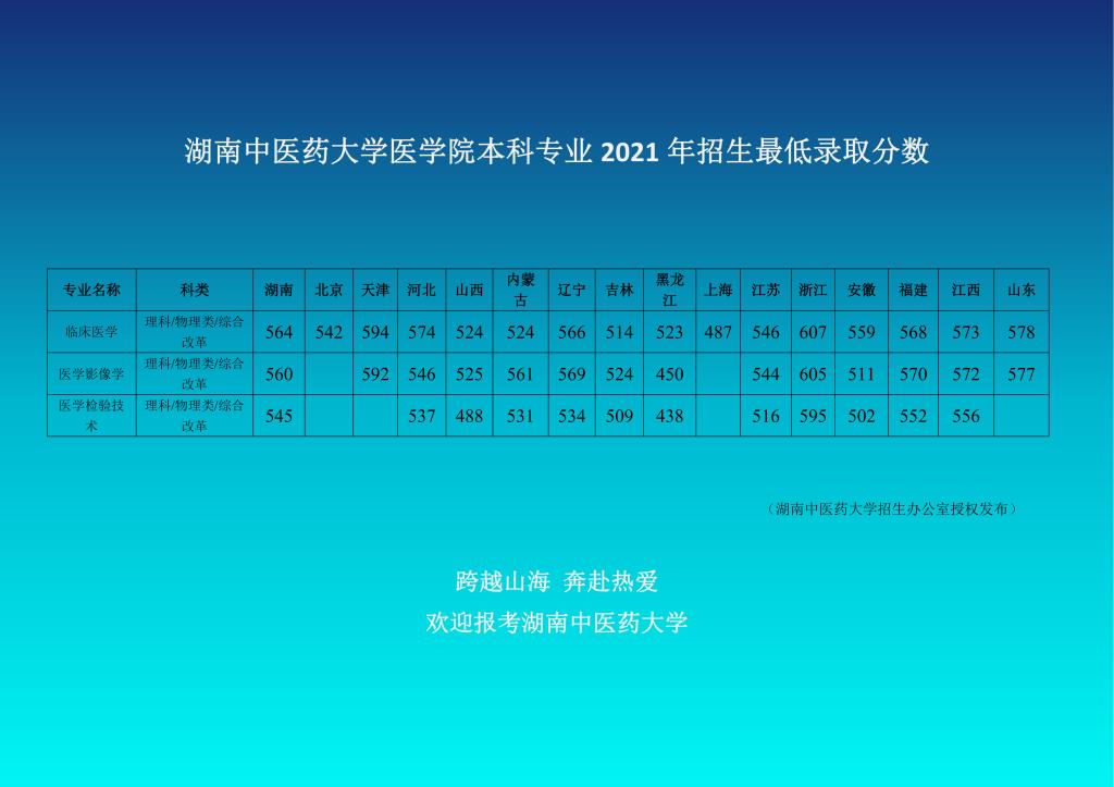 湖南中医药大学医学院本科专业 2021 年招生最低录取分数