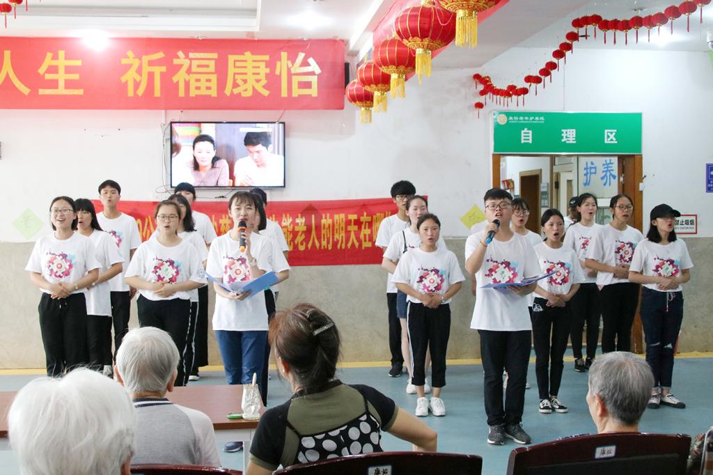 上午九时许,全体志愿者到达康怡养护院。之后,志愿者们分成三组,分别去往一楼、四楼、五楼。志愿者们主动与老人们聊天,同时展开艾炙、推拿、量血压等系列志愿服务活动,接着在一楼大厅,志愿者们献上了精心准备的节目:太极、手语·朗诵《国家》、小品《和平饭店》、朗诵·合唱《大美中国》,期间还有两位老人献唱。节目结束后,医学院团委副书记李明表达了对老人们的关心与祝福。随后康怡养护院的负责人发言,表达了对志愿者们的感谢,活动圆满结束。