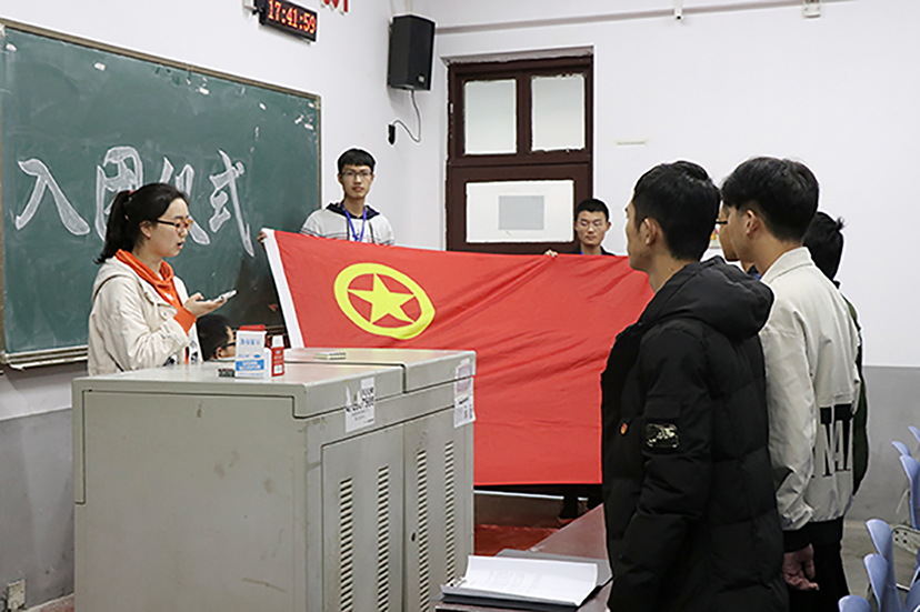 在五四青年节来临之际,为进一步加强中国共青团基层组织建设,4月29日下午五点半医学院新团员入团仪式在1308教室顺利举行。医学院全体新团员以及学生会部分工作人员共同参与了此次活动。