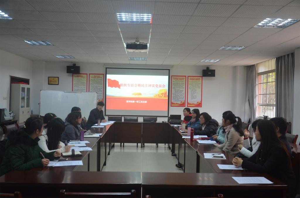 12月29日上午,医学院第一职工党支部在医学院会议室召开专题组织生活会暨民主评议党员会,支部全体党员参加了会议,还邀请了教研室主任、教学秘书及民主党派老师,会议由支部书记唐群同志主持,学校党委委员、副校长葛金文受邀参加了本次会议。