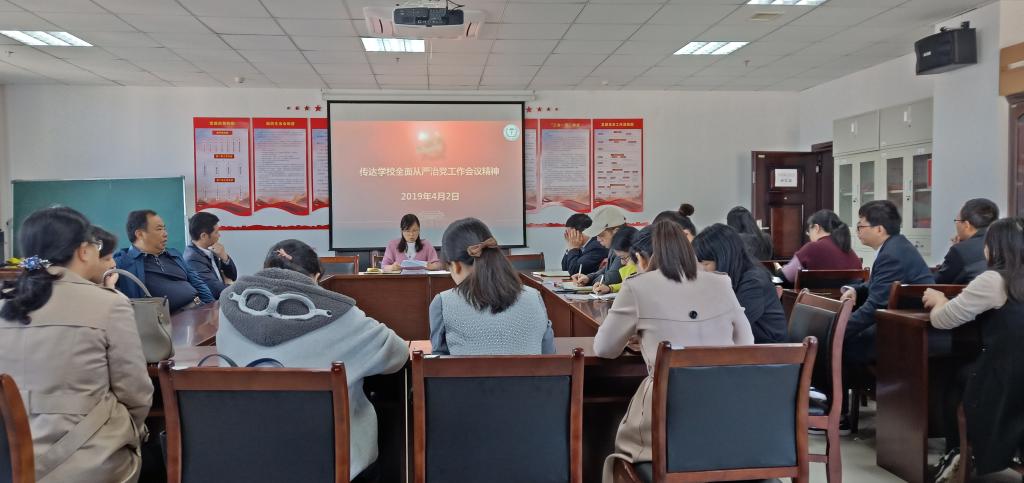 2019年4月2日,医学院召开学院全面从严治党工作会议。会议由院党委书记文红艳同志主持,学院领导班子、各科室负责人和全体职工党员参会。