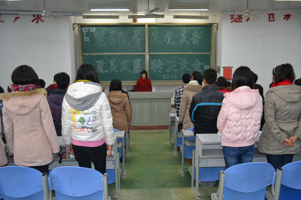2012年12月21日,医学院第一学生党支部“党员发展转正大会”在1207教室成功举行,本次大会围绕我院2010级临床医学、影像医学和口腔医学三个专业“接受新党员和发展预备党员”为议题而召开。大会由第一学生党支部宣传委员贺薪伊主持,党支部书记祁承勇老师,副书记黄林老师及大三全体学生党员出席了此次大会。