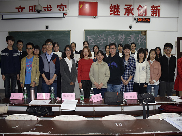 比赛开始,选手们可谓是各显神通:“门洞效应”,你从未听过的新奇词汇;“疟疾与青蒿素”,世界最热门的话题;“大学生保胃战”,贴近生活且趣味性十足。演讲者慷慨激昂,意气风发;演讲内容精彩纷呈,俨然是一场视觉与听觉的盛宴。不仅如此,评委老师提出的犀利的问题,选手们也能自信作答。最后,免疫教研室伍参荣老师对本次比赛进行了点评。她肯定了每位选手渊博的科学知识及精心的准备,并对选手们的完美发挥表示祝贺。她以一个“交流者”的身份,表达出了和同学们沟通、分享的愉悦。