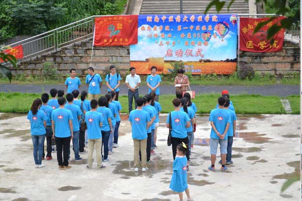 2014年7月5日上午8点,湖南中医药大学医学院携手临床医学院,第一中医临床学院、以岭药业有限公司和金鹰955电台共计35人的暑期“三下乡”团队于含浦校区出发,赴娄底市双峰县甘棠镇石塘边村开展为期两天的暑期“三下乡”社会实践活动。