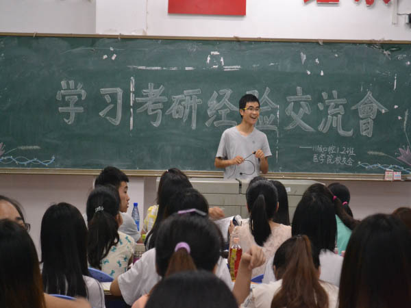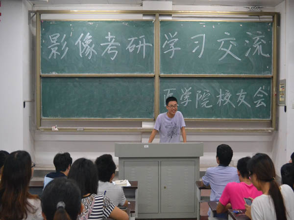 为进一步加强同学们对研究生入学考试的认识,了解前沿的就业形势、增强考研斗志。医学院校友会协助2011级医学影像班和口腔医学班分别在6月6日、6月9日晚于1211、2206教室举行了学习考研经验交流会。