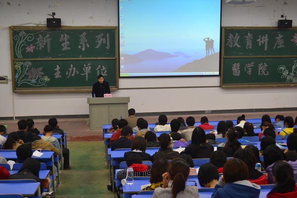 10月30日晚,湖南中医药大学第一附属医院检验科主任谢小兵教授受医学院邀请,在1506教室为医学院2012级医学检验专业、医学影像专业、口腔医学专业的新生举行了一场讲座。医学院党总支王健副书记携学院师生一同听取了谢教授的精彩讲座。