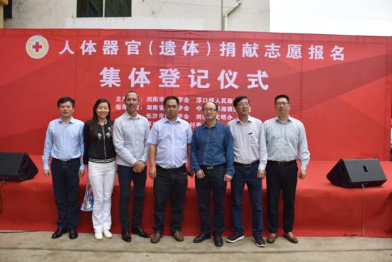 由湖南中医药大学医学院解剖教研室主任李新华教授、杨奔老师带领12名医学院学生参加了湖南省红十字会人体器官捐献管理中心、长沙市红十字会、浏阳市红十字会等共同筹办的“人体器官(遗体)捐献志愿报名集体登记仪式”。