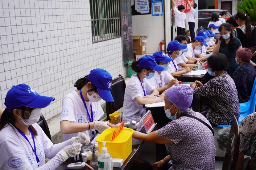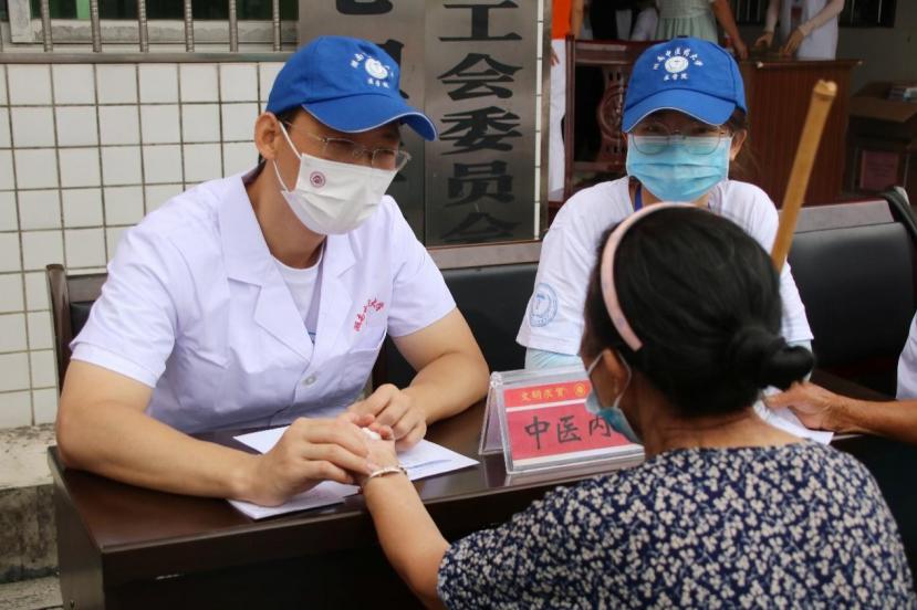 义诊团邀请了西医内科、中医全科、儿科、口腔科、眼科、耳鼻喉、心理健康专家现场开展诊治检查,现场开具药方。免费服务项目包含身高、体重、视力检查、测血压、测血糖、心电图、刮痧、艾灸、拔罐以及儿童口腔涂氟等,连续接诊量300余人。树溪村49岁的糖尿病伴高血压患者杨世华说:“不用出远门,就有专家来看病,送了药还有处方,感谢专家和大学生。”