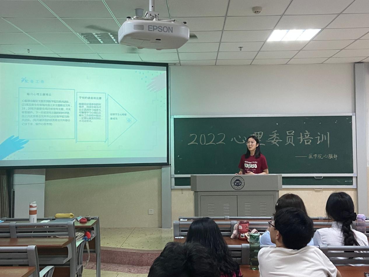 2022年5月30日19:30,医学院心理委员培训于湖南中医药大学含浦校区第三教学楼3203教室成功举办。此次培训由医学院心理健康服务部专干老师毛心洁老师作为指导老师,由医学院第十三届心理健康服务部负责人颜语及工作人员苗轩主讲,医学院2021级各班心委参与了此次培训。