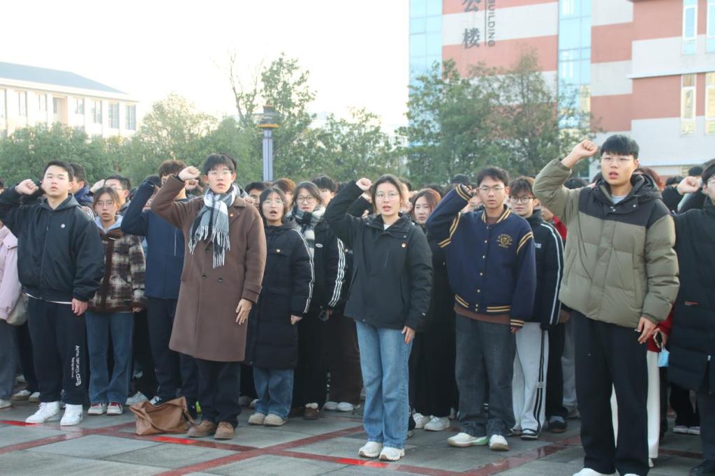 7时整,国歌奏响,全体师生整齐肃立,向国旗行注目礼,对伟大祖国致以最崇高的敬意。随后,校旗伴随着校歌缓缓上升,与国旗一同迎风飘扬。