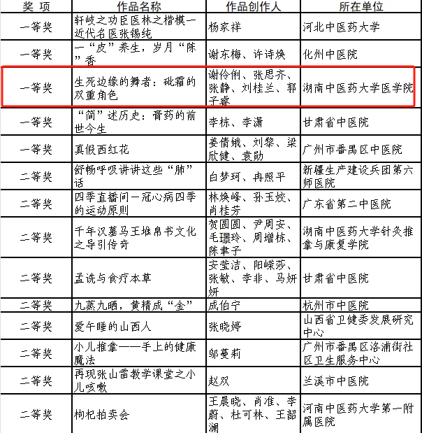 本届大赛自启动以来,吸引了全国中医药高校、医疗机构、科研院所等数千名选手参与,覆盖东北、华北、华东、华南、西南、西北多个分赛区。经过湖南分赛区严格筛选,我省最终30件作品推荐国赛。我院积极响应大赛号召,组织师生精心筹备,最终凭借《生死边缘的舞者:砒霜的双重角色》问鼎桂冠。
