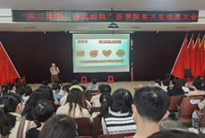 4月24日上午十点半,湖南中医药大学医学院“实习筑梦,扬帆起航”实习生动员大会在东塘学术报告厅顺利召开。本次实习动员大会由实习科副科长李佩主讲。医学院党委副书记任婷、学生科副科长廖海燕、辅导员李轶哲老师以及2018级临床医学专业、2018级医学影像学专业全体同学参与了本次动员大会。