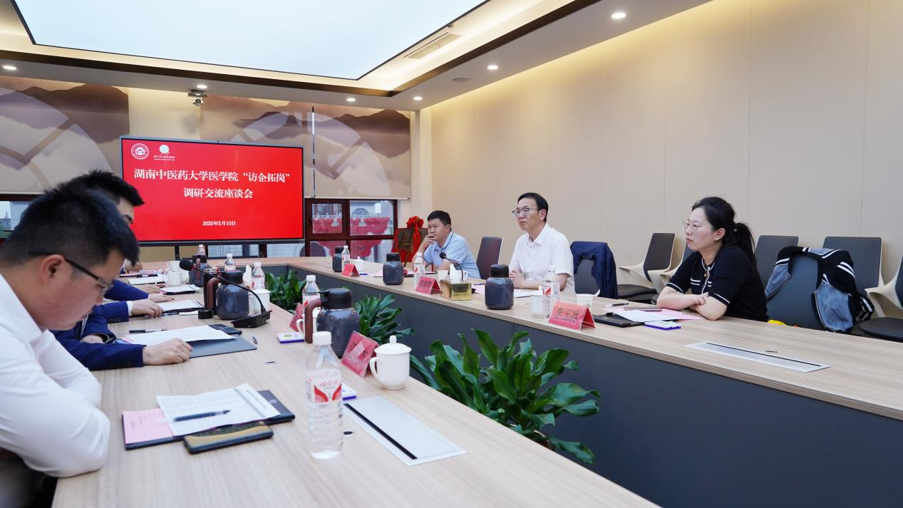 雷晓明从发展历程、办学定位、教学特色及人才培养成果等方面介绍了医学院建设情况。当前正值中医药振兴发展的重大机遇期,期待双方以共建产教融合教育基地为起点,充分发挥各自优势,在科研项目联合攻关、实习实训基地建设、毕业生就业对接等方面开展务实合作,推动产教融合取得实质性成果。