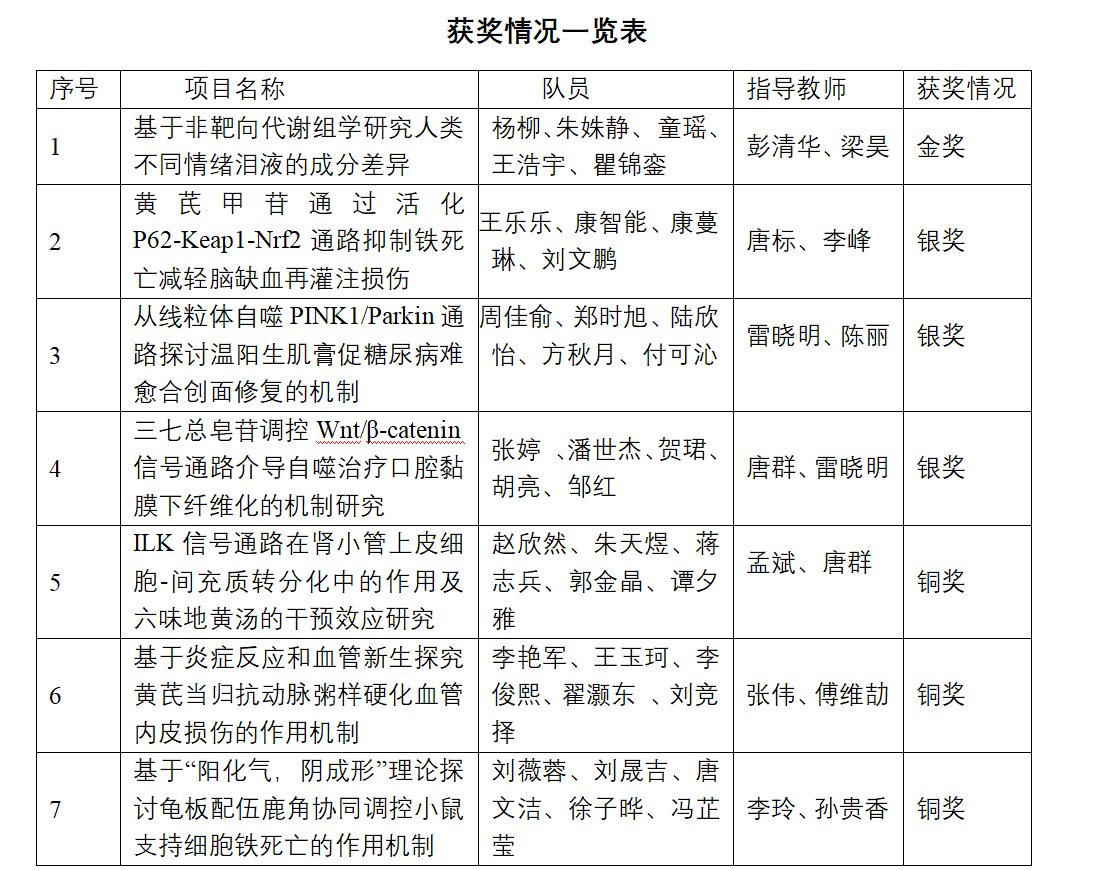 在校领导的高度重视下,医学院组织专家和指导教师选拔培育项目,从校赛、区赛到国赛,对学生开展了长达近一年的科研训练和全程跟踪指导,10个项目代表学校参加中南赛区竞赛,并以区赛一等奖3项、二等奖4项的成绩晋级全国总决赛,最终斩获佳绩。