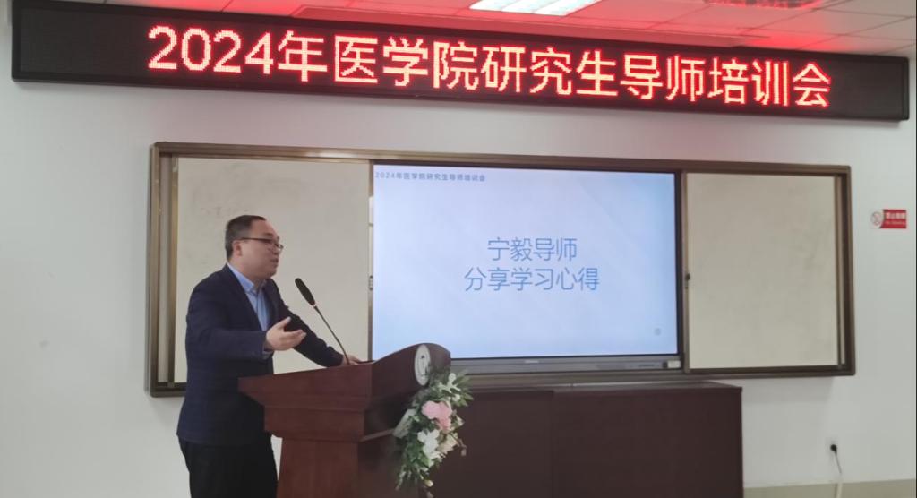 10月29日下午,为深入贯彻党的教育方针,全面落实导师立德树人职责,进一步加强导师队伍建设,医学院在济世楼1306会议室举行了研究生导师培训会,会议由唐群副院长主持。医学院全体在岗博士、硕士研究生导师参会。