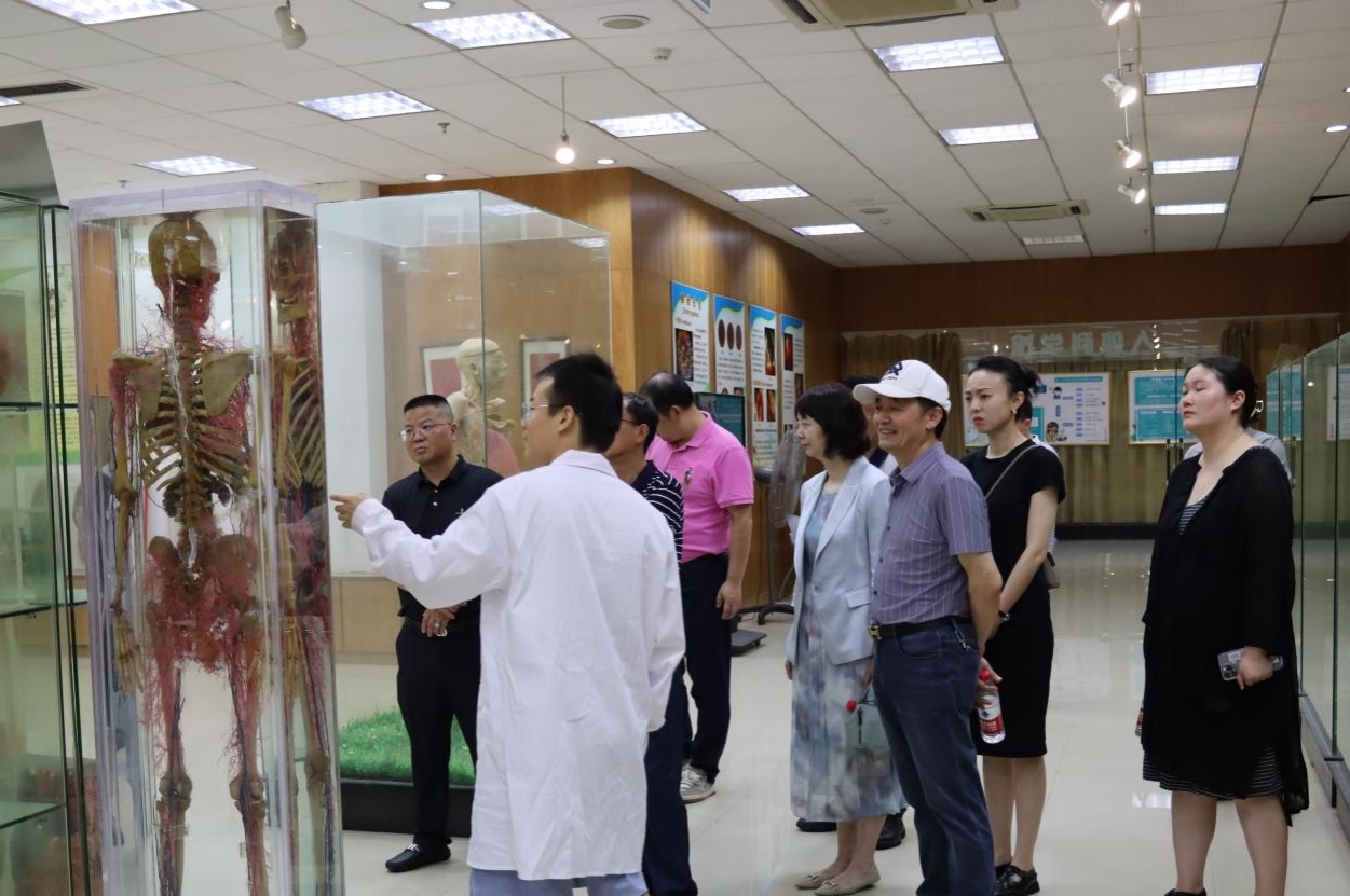参观团一行人先后来到我校校史馆、中药标本馆、人体科学馆及药植园参观学习。我校人体科学馆于2007年建成,目前共有展品474件,设有塑化标本、铸型标本、断层标本、病理标本、穴位标本、胎儿标本及人体九大系统标本等15个展区,是我校本科人体解剖学实验教学、对外交流展示学校形象的重要平台。