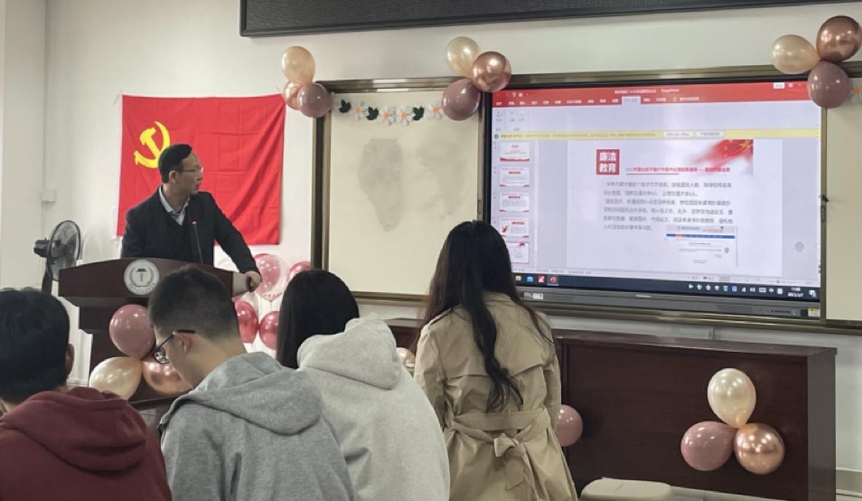为深入学习贯彻党的二十大精神,进一步引导广大党员增强廉洁自律意识,筑牢廉洁自律的思想防线,把全院师生的思想统一到党的二十大精神上来。2023年3月7日,医学院研究生党支部于医学院会议室开展“喜迎党的二十大,永远跟党走”的主题党日活动。本次活动邀请院党委委员雷晓明院长带领大家学习,由医学院党支部书记刘娅薇主持本次会议,医学院研究生党支部全体党员及入党积极分子参加会议。