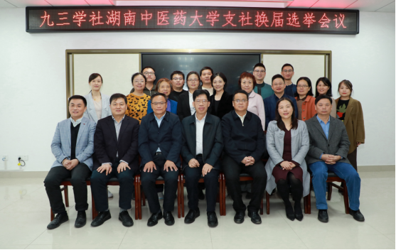 九三学社湖南省委员会组织处处长肖泽辉、湖南中医药大学宣传统战部常务副部长章小纯等出席会议。支社社员参加会议。