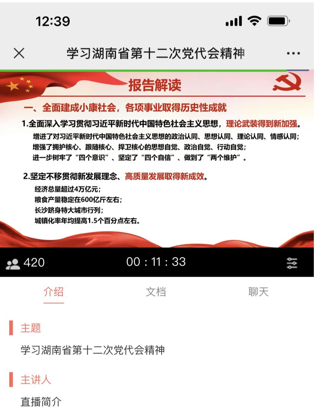 12月7日,医学院组织全体师生通过线上形式,听取湖南省第十二次党代会代表卢芳国教授传达湖南省第十二次党代会精神,师生党员420余人参加学习。