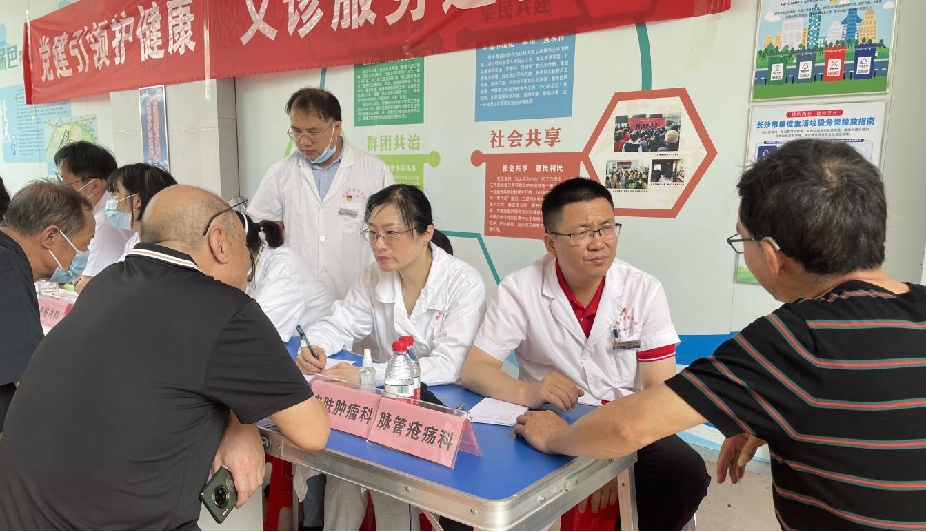 5月21日,学院第一职工支部、第五学生支部与第一附属医院烧伤科支部、监察科党支部和肾内科支部共赴长沙市四方坪科大景园社区开展义诊活动。