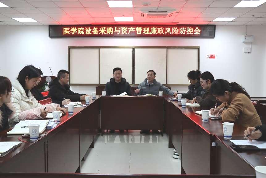 3 月 4 日下午,医学院在1306会议室召开了设备采购与资产管理廉政风险防控会议,旨在加强廉政建设,规范设备采购与资产管理流程,确保各项工作廉洁高效开展。党委书记雷晓明、院长成绍武以及分管教学、资产、实验室工作的院领导出席会议,各实验室负责人和资产管理员参加了会议。