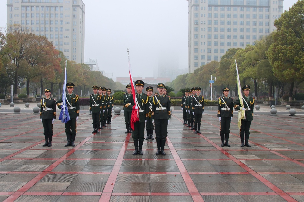 活动伊始,国旗护卫队护送国旗、校旗入场,在全体师生注目礼下,奏国歌升国旗、奏校歌升校旗。