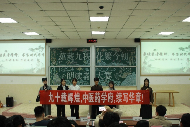 九秩沧桑巨变,岐黄历久弥新。母校华诞即将到来之际,医学院师生齐聚一堂,共庆风华正茂的九十载,期许继往开来,书写辉煌新篇。为了深入贯彻习近平新时代中国特色社会主义思想,激发学子们的爱国情怀,增强对民族复兴大业的责任感与使命感,10月30日,医学院本科学生党群服务中心精心组织的“蕴藏九秩,花繁今朝”朗读者演讲决赛在三号教学楼3216教室盛大开幕。本次活动由党群指导老师廖海燕、第七学生党支部书记颜晔和学生管理科老师马翔,以及党群服务中心学生干部和参赛选手及各班观众共襄盛举。