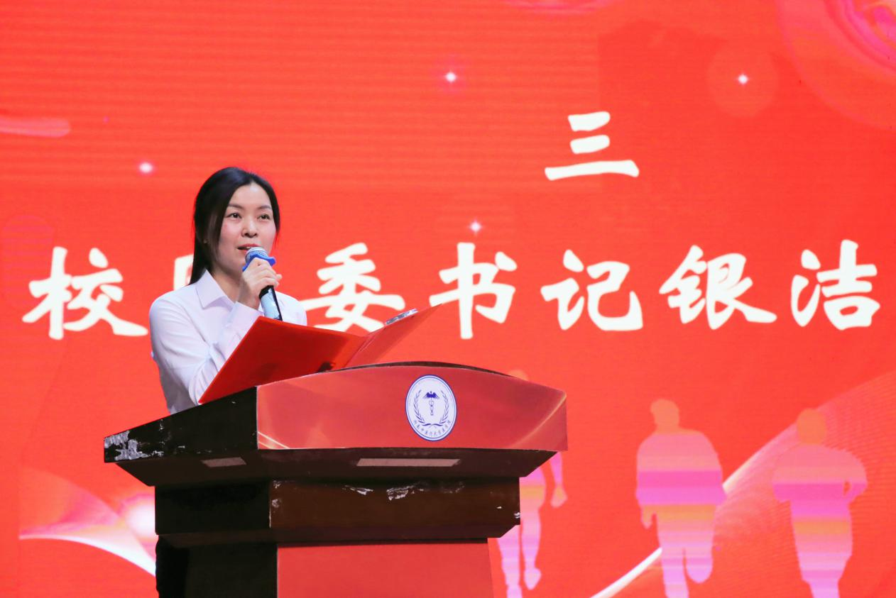 银洁代表校团委向大会召开致以热烈祝贺,并向各方表示感谢与敬意。她寄语离任团学干部砥砺前行,新任成员勇担责任,期望全体团员青年以赤子心校准信仰坐标,以奉献心践行服务宗旨,以工匠心锻造青春硬核,在时代浪潮中破浪前行。